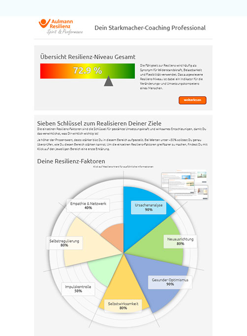 Starte mit Deinem ausführlichen Resilienz-Test und erfahre, welche Bereiche es jetzt konkret zu stärken gilt.